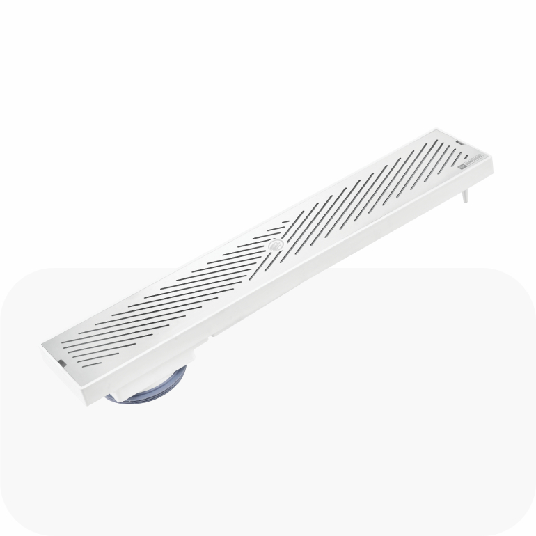 A sleek, elongated drain crafted with CNC precision and a rust-resistant stainless-steel top for modern washrooms. Features a durable ABS base and strong filter design, ensuring smooth water flow without clogging. An innovative auto-filter mechanism: the flap stays closed when no water flows, preventing odors and insects from rising, and opens only when water passes through.